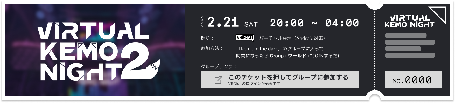 「バーチャルケモナイト2」は、オールナイトのVRChatのDJイベントです。 「VRChatって初めてなんだけど…」「DJイベントってどんな感じ? そんな心配はご無用!私たちがノリの良い選曲とパフォーマンスで、アツい一夜をお届けします!